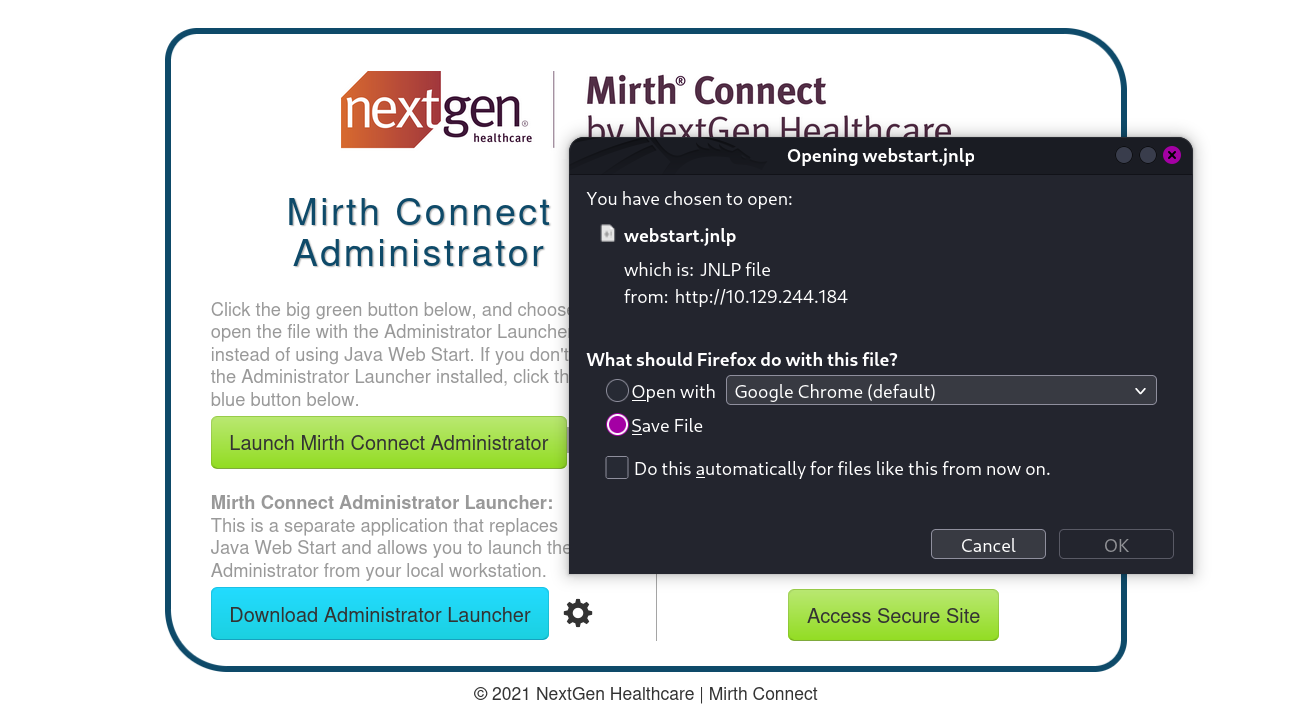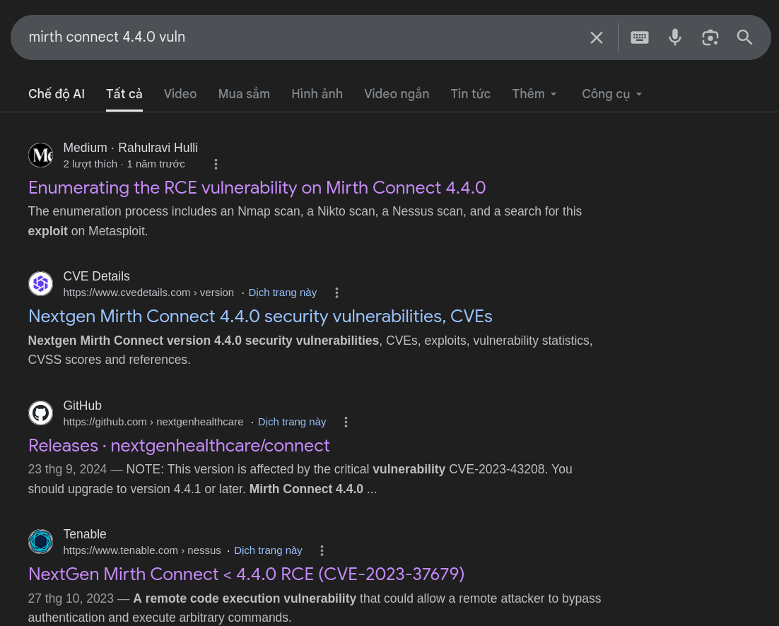 Nhìn vào trong, có 3 cổng đang mở. Từ http-title, Biết rằng website này sử dụng Mirth Connect