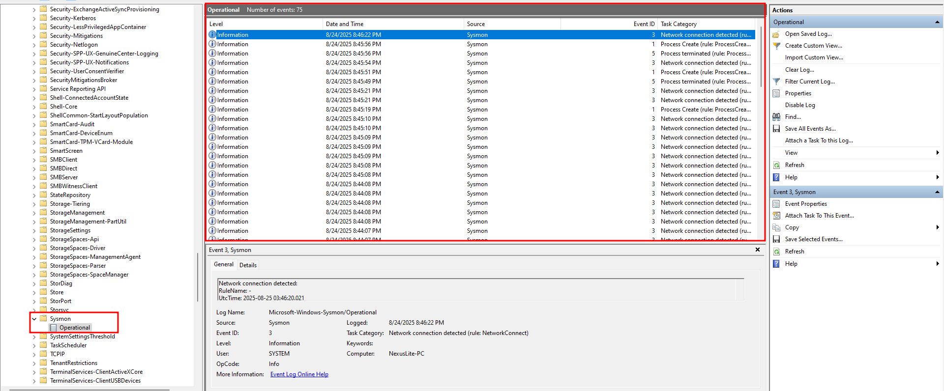 Ta có thể sử dụng file log Security.evtx hoặc Sysmonlog với Login type 3 (Network logon) để xem các truy cập thông qua internet