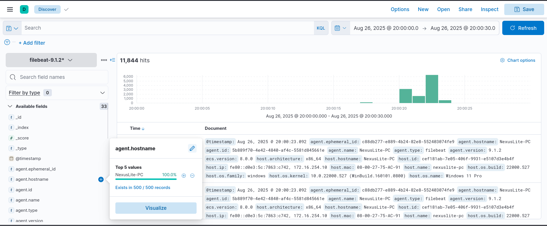 -> Sau khi service chạy, Filebeat trên Windows sẽ forward log về Elasticsearch/Kibana.