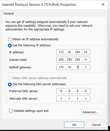 Để cấu hình mạng mình set ip là 172.16.254.10